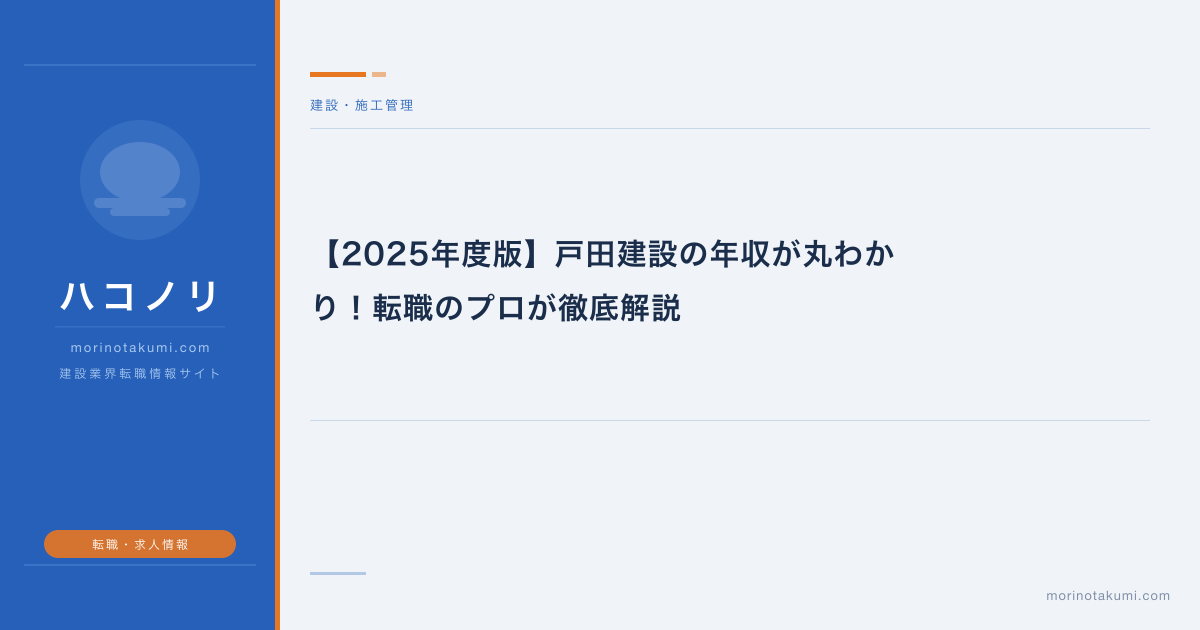 【2025年度版】戸田建設の年収が丸わかり!転職のプロが徹底解説
