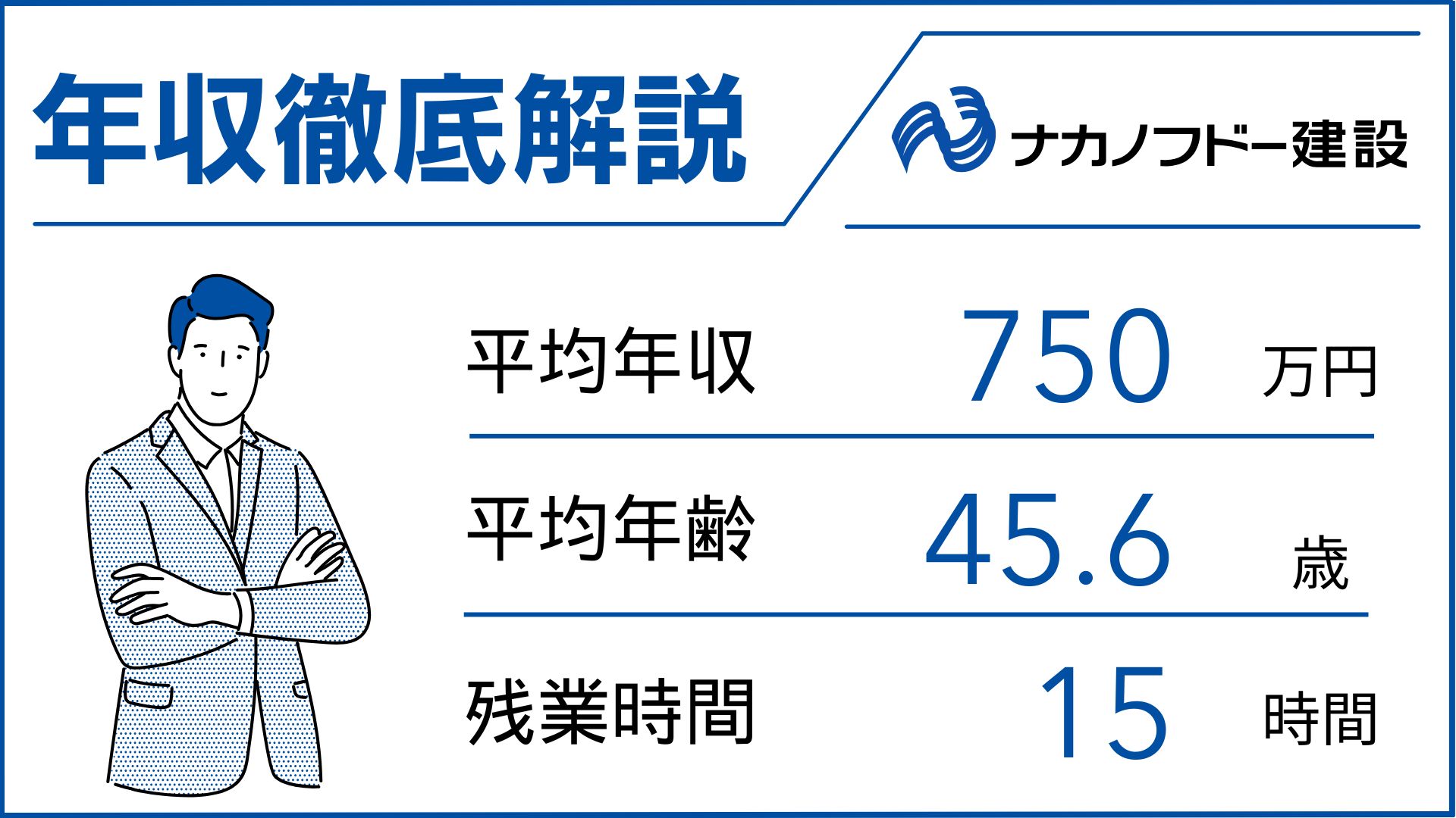 ナカノフドー建設の全社員の平均年収は約750万円となっています。この水準は、建設業界の中でも比較的高い位置にあり、大手ゼネコンとしての待遇の良さを示しています。