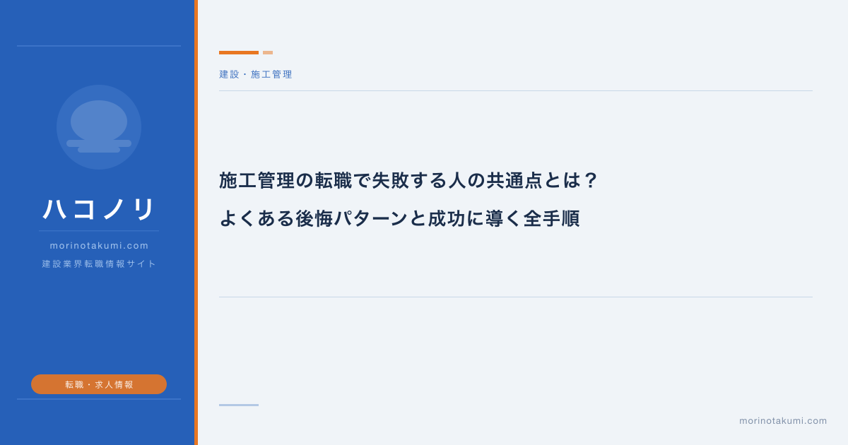 施工管理の転職で失敗する人の共通点とは?よくある後悔パターンと成功に導く全手順