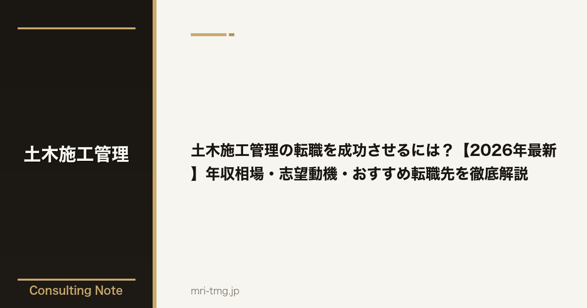 経験者の志望動機の例としては、「前職では道路工事を中心に10年間の施工管理経験を積んでまいりました。御社はICT施工を積極的に導入されており、私がこれまで培った現場管理ノウハウとICT活用の経験を掛け合わせることで、さらなる生産性向上に貢献できると考え、志望いたしました。特に御社が手掛ける大規模河川事業において、監理技術者として即戦力になれると自負しております」といった内容が考えられます。