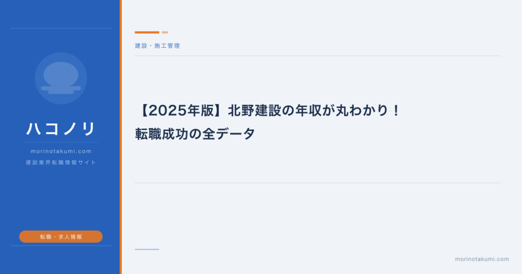 【2025年版】北野建設の年収が丸わかり!転職成功の全データ