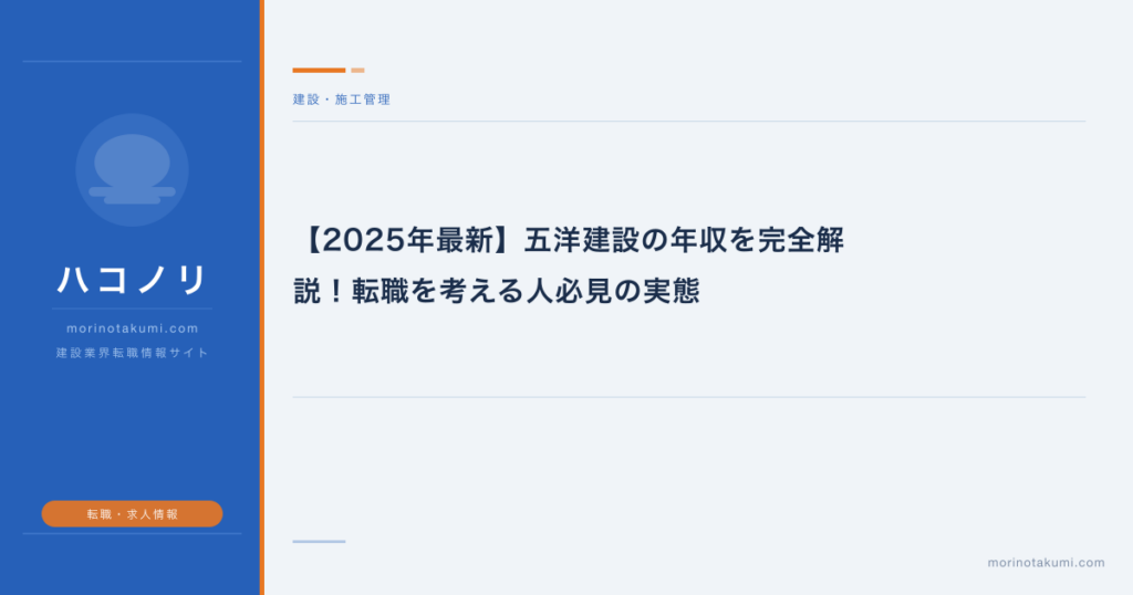 【2025年最新】五洋建設の年収を完全解説!転職を考える人必見の実態