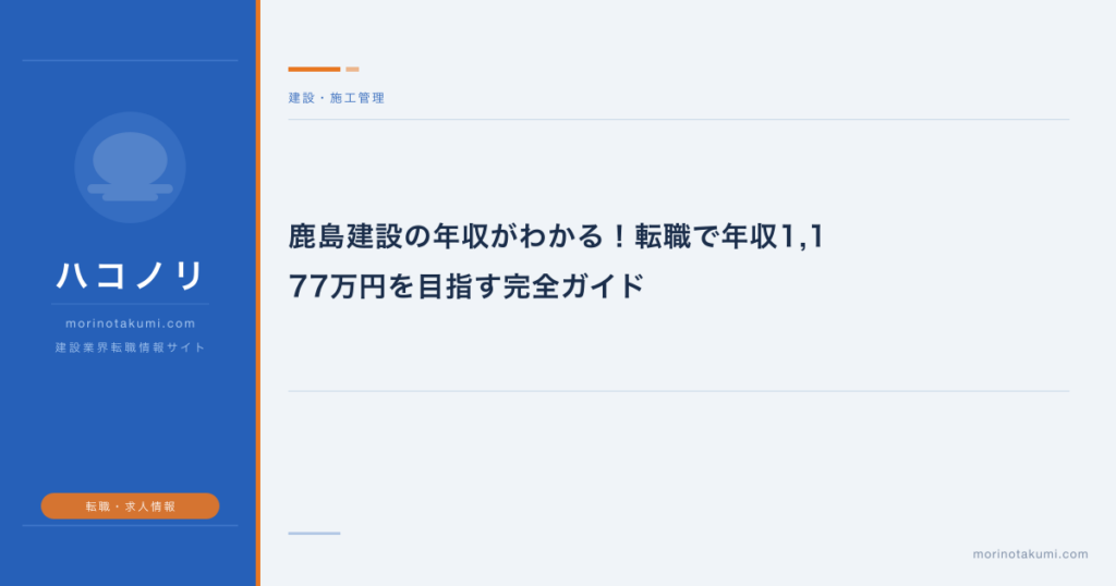 鹿島建設の年収がわかる!転職で年収1,177万円を目指す完全ガイド