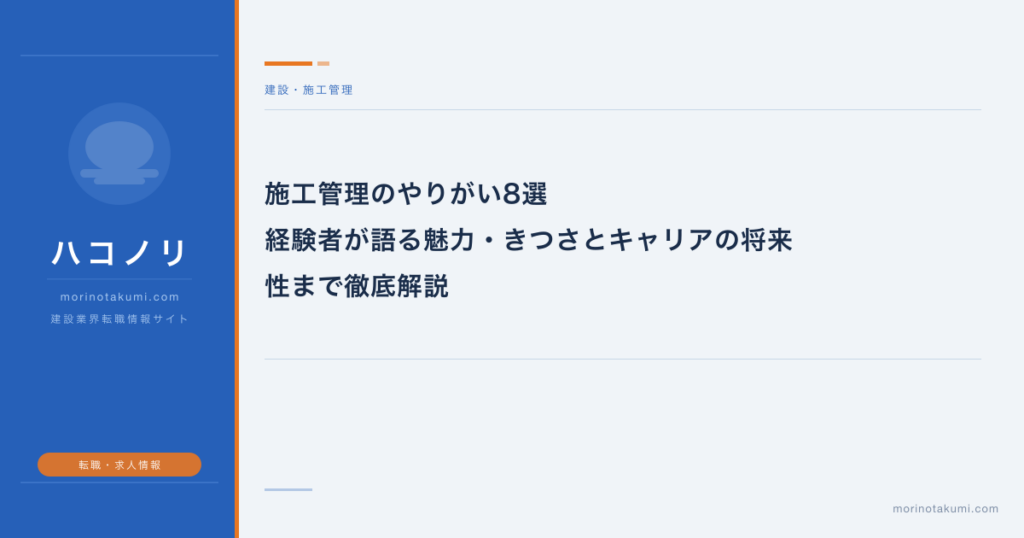 施工管理のやりがい8選|経験者が語る魅力・きつさとキャリアの将来性まで徹底解説